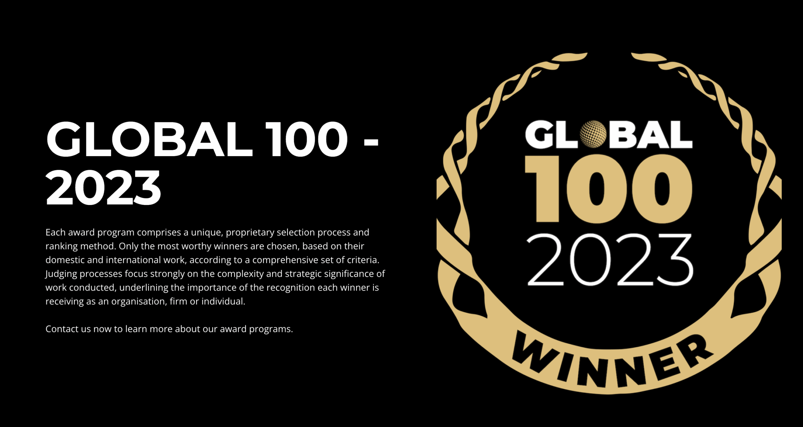 Each award program comprises a unique, proprietary selection process and ranking method. Only the most worthy winners are chosen, based on their domestic and international work, according to a comprehensive set of criteria. Judging processes focus strongly on the complexity and strategic significance of work conducted, underlining the importance of the recognition each winner is receiving as an organisation, firm or individual. Contact us now to learn more about our award programs.